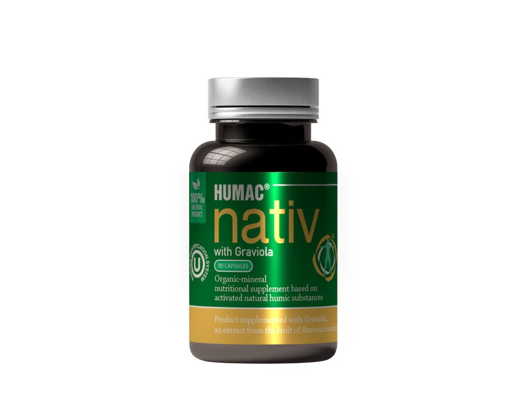 HUMAC® Nativ s Graviolou je 100% prírodný produkt zložený z aktivovaných prírodných humínových látok, získaných z Leonarditu. Obsahuje dôležité minerály a stopové prvky v chelátovaných väzbách pre ich lepšie a jednoduchšie využitie organizmom. Prírodné humínové kyseliny sú známe pre svoju schopnosť viazať ťažké kovy. Táto fyzikálna vlastnosť je u humínových kyselín veľmi dobre preukázaná.